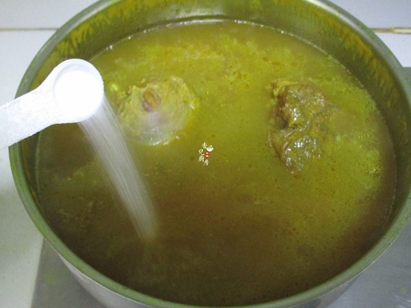 8.之后開蓋把土豆和胡蘿卜塊加入用大火燒開,加鹽調味后再轉小火燉至土豆酥軟