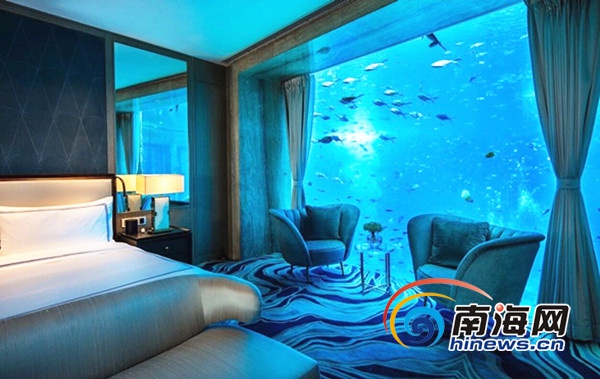 走進客房透過臥室和浴室中的落地窗,可以欣賞到大使環(huán)礁湖的曼妙景致。南海網(wǎng)記者劉麗萍攝