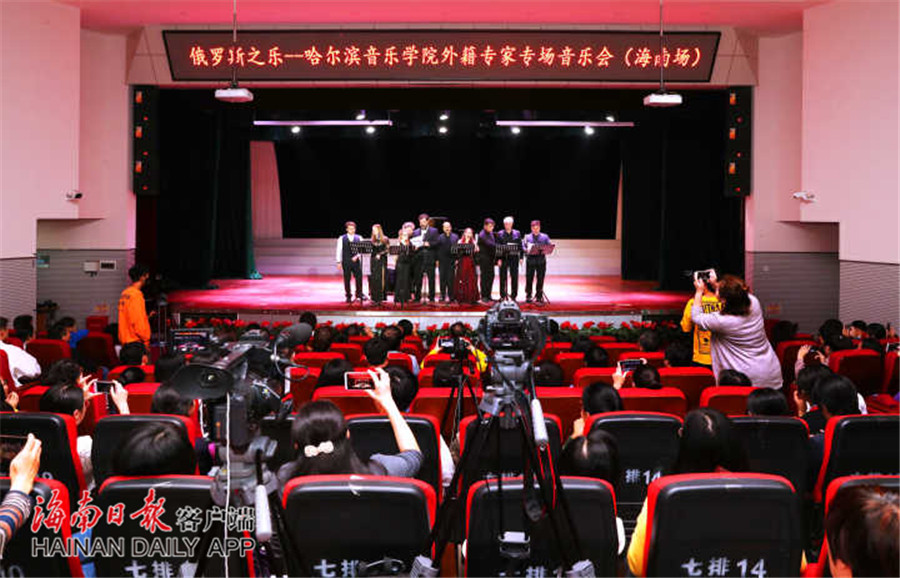 12月20日晚上,哈爾濱音樂學院“俄羅斯之樂”外籍專家專場音樂會在海南師范大學舉行,來自哈爾濱音樂學院及俄羅斯圣彼得堡音樂學院的外籍專家登臺演出,為該校師生代表及部分椰城市民獻上了一場高雅的視聽盛宴。