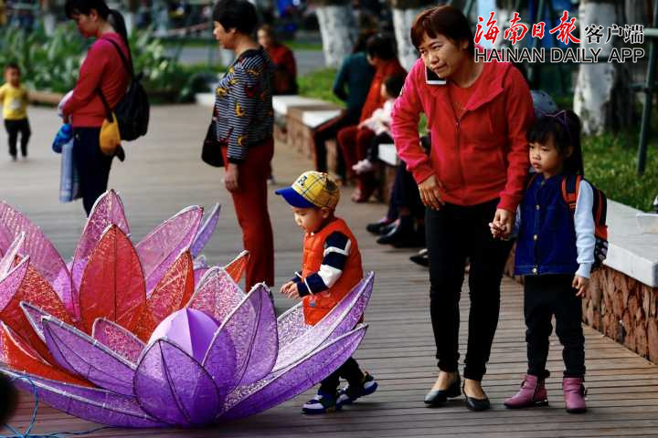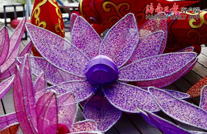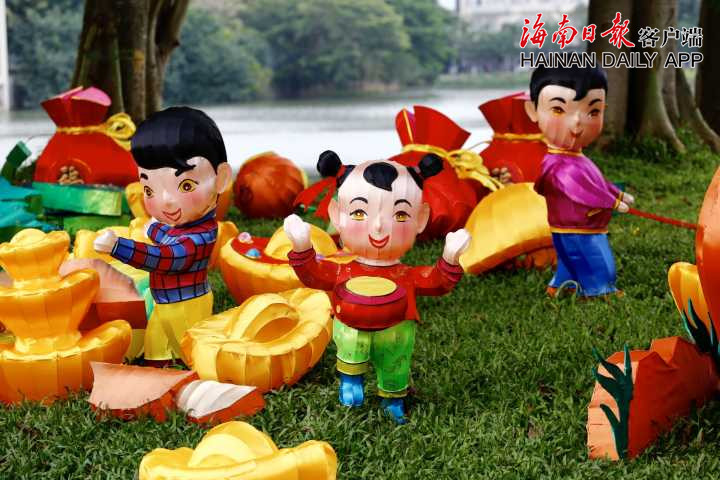 花燈造型共有十幾種,有卡通人物、蓮花、生肖豬、年年有魚等,顏色鮮亮,格外引人注目。據(jù)海南日報客戶端記者陳若龍 攝