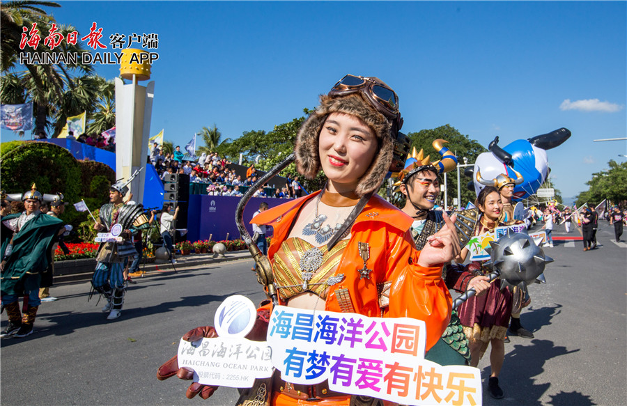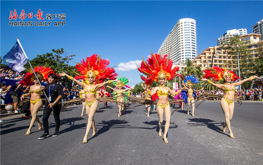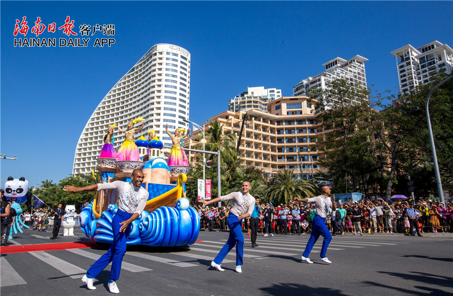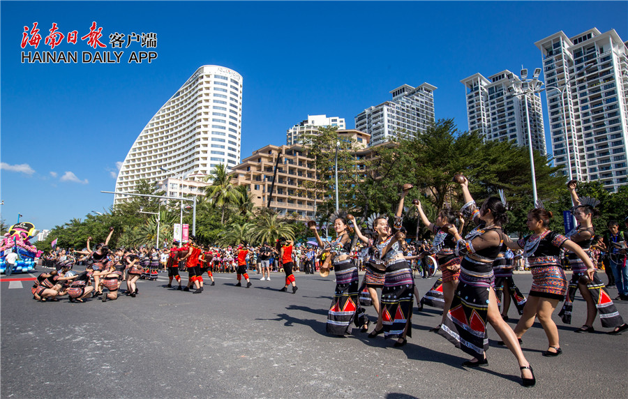 緊隨其后,志愿者方陣、青春街舞方陣、炫動(dòng)三亞花車與絲路情長(zhǎng)花車方陣、吉祥人偶方陣、黎族苗族舞方陣、電音章魚花車與重型機(jī)車方陣陸續(xù)出場(chǎng),沿著三亞灣從海月廣場(chǎng)一路走向鳳凰島入口。
