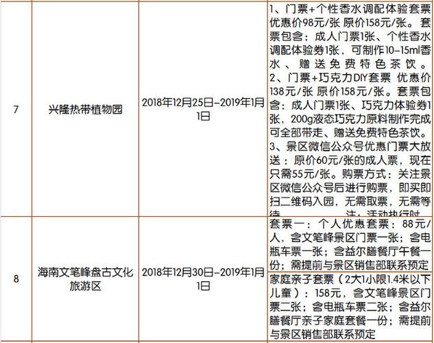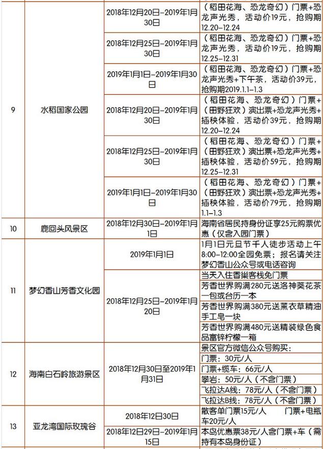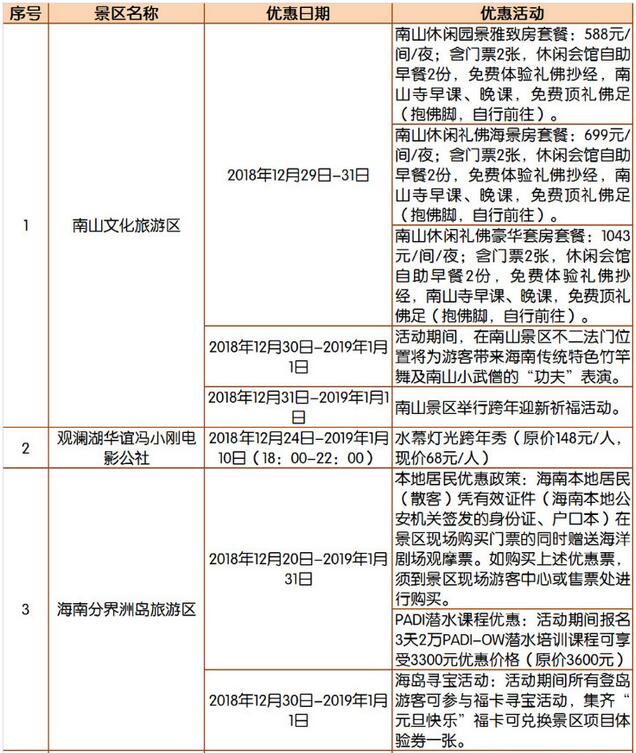 優惠詳情見2019年元旦期間海南旅游景區優惠活動匯總表。