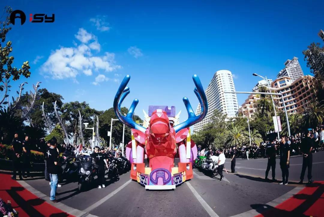 三亞別稱“鹿城”,主花車形象也是因其美好的愛情傳說塑造而成,它昂首嘶鳴,霸氣的鹿角展示出了它內(nèi)在的力量與氣勢。搭配耳機(jī)、音響、舞臺等潮流音樂元素,使其不脫離ISY的音樂本質(zhì)。