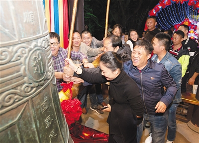 ?2019年1月1日零時,市民游客在三亞南山景區撞鐘祈福。 本報記者 武威 特約記者 陳文武 攝