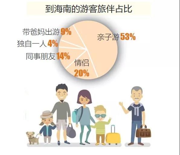 根據(jù)攜程跟團(tuán)游和自由行數(shù)據(jù), 53%的游客選擇和孩子一起 ,海南仍然是親子游的重要目的地,其次為情侶,占比達(dá)到了20%。