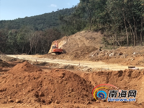 ?木排至蘭洋旅游公路,挖掘機正在清表整平路基。 南海網(wǎng)記者 王全印 攝