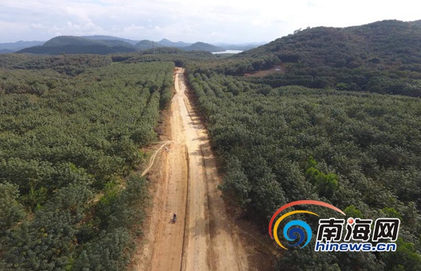 鳥瞰木排至蘭洋旅游公路,路基清表整平累計5.5公里,完成占比46.6%。 南海網(wǎng)記者 王全印 攝