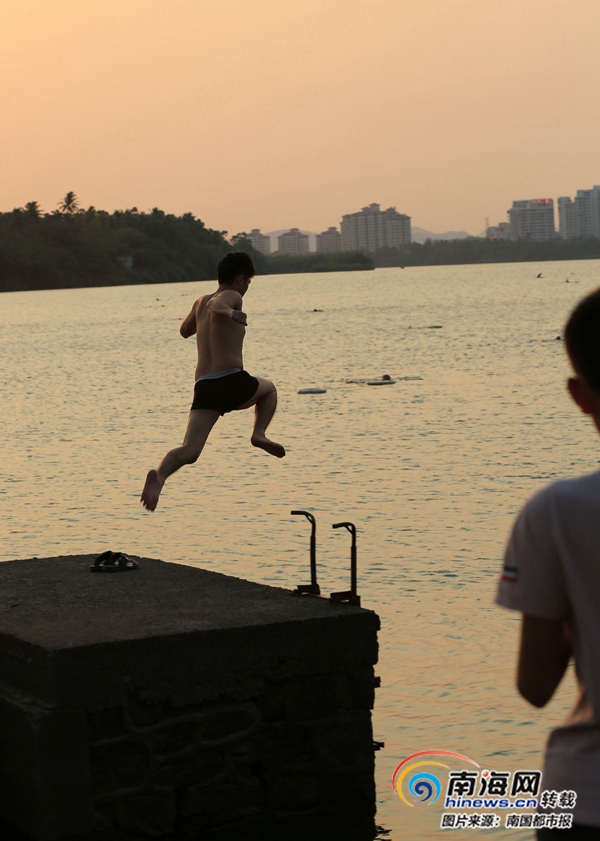 21日下午6點(diǎn)時(shí),記者再次來到水電站看到,數(shù)十輛汽車、摩托車停在親水平臺(tái)處,河里已有20多名游泳者,堤壩上人來人往,好不熱鬧。“感動(dòng)海南”2015年度人物魏文賢堅(jiān)守在堤壩的人群中,四周觀望,時(shí)刻盯著水面、壩邊,看到有未成年人進(jìn)入堤壩,他老遠(yuǎn)就揮手喊著“回去回去”。