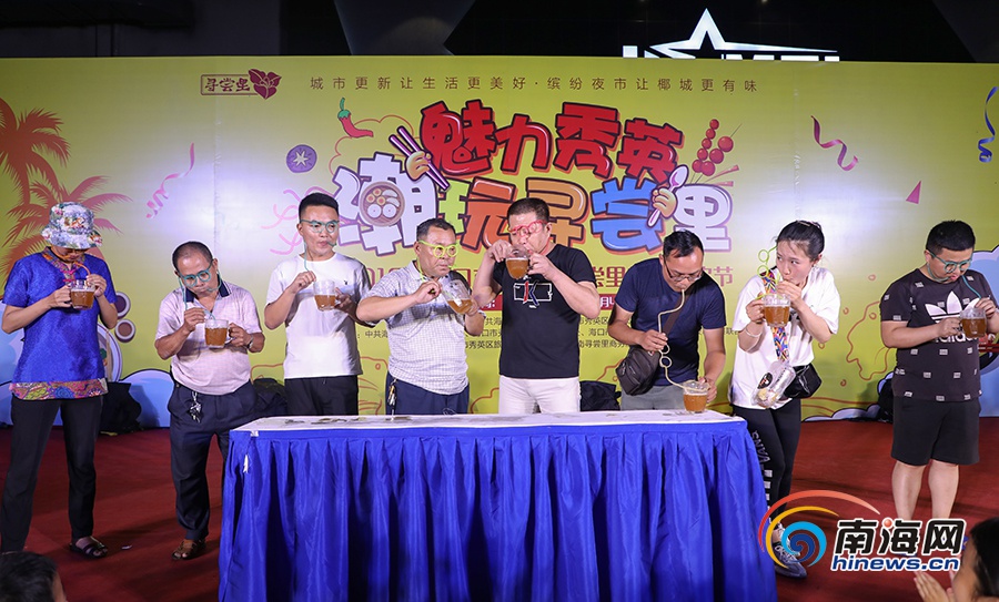 尋嘗里美食狂歡節(jié)“趣味啤酒挑戰(zhàn)賽”。南海網(wǎng)記者 李昊 攝