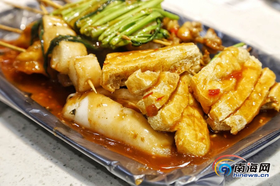 “母親每天都要早起去市場(chǎng)挑選最新鮮的食材,我們店主打的炸炸有培根金針菇、鵪鶉蛋、雞翅膀、牛肉丸、空心菜、三角豆腐等等,很受顧客的歡迎。”張茹介紹,不同攤位的炸炸醬汁各有千秋,味道也有所不同,而母親秘制的醬汁是他們店里炸炸美味的源泉。
