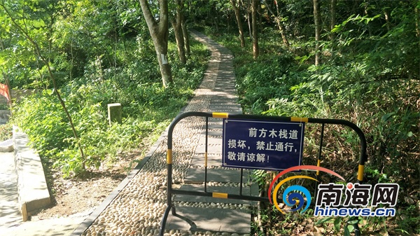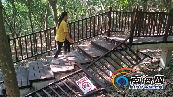 通往儋陽樓的木棧道損壞嚴(yán)重。南海網(wǎng)見習(xí)記者 李紹遠(yuǎn) 攝
