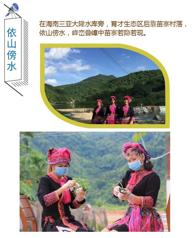 育才生態(tài)區(qū)那會村委會后靠村是三亞特色苗寨,也是三亞今年脫貧“摘帽”的16個村之一。這里森林覆蓋率達80%以上,原始樹林里花草繁盛,各種參天大樹拔地而起,為苗族同胞制作彩虹粽提供了最天然的原料。