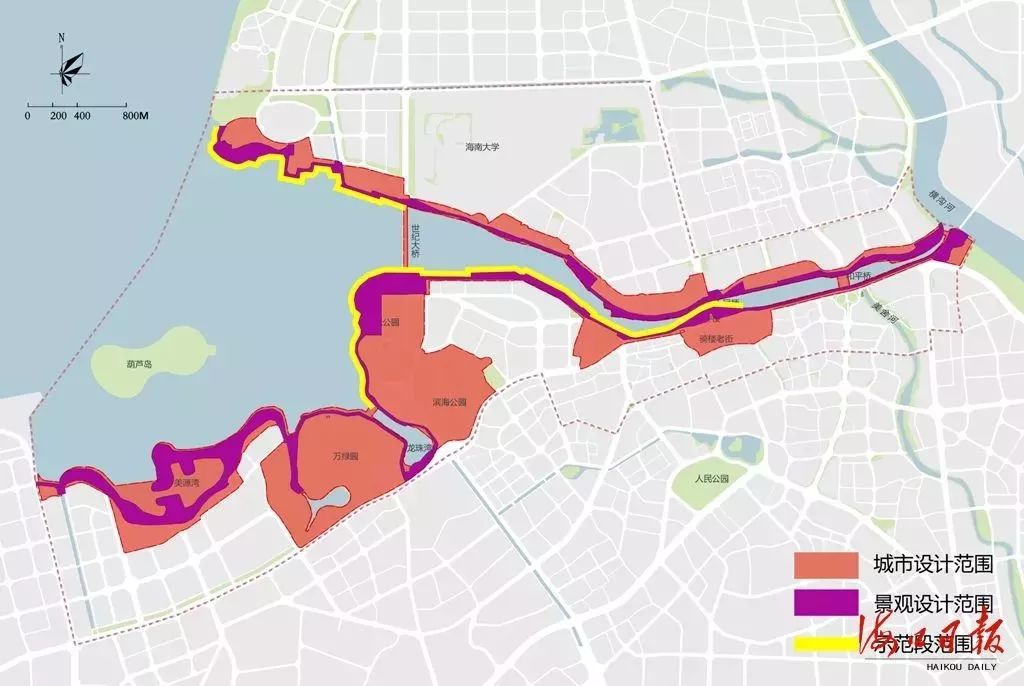 二期則包括海甸溪北岸東起橫溝河,西至世紀大橋;海甸溪南岸東起橫溝河、西至人民橋節點公園西側,兩岸全長約7公里;三期建設主要分布在龍華區。