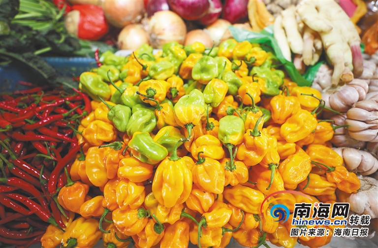 新鮮的黃燈籠辣椒和朝天椒。 海南日?qǐng)?bào)記者 武威 特約記者 陳思國(guó) 攝