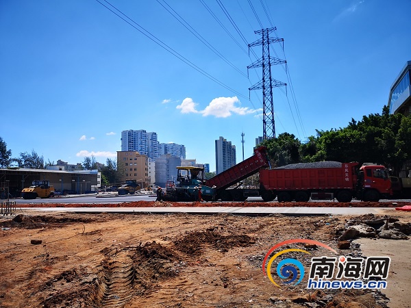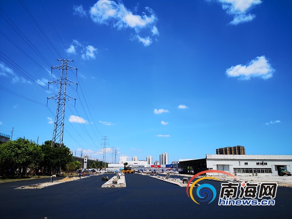 秀英站的公交車站臺道路瀝青已經(jīng)鋪設(shè)完畢。南海網(wǎng)記者 蘇靚 攝