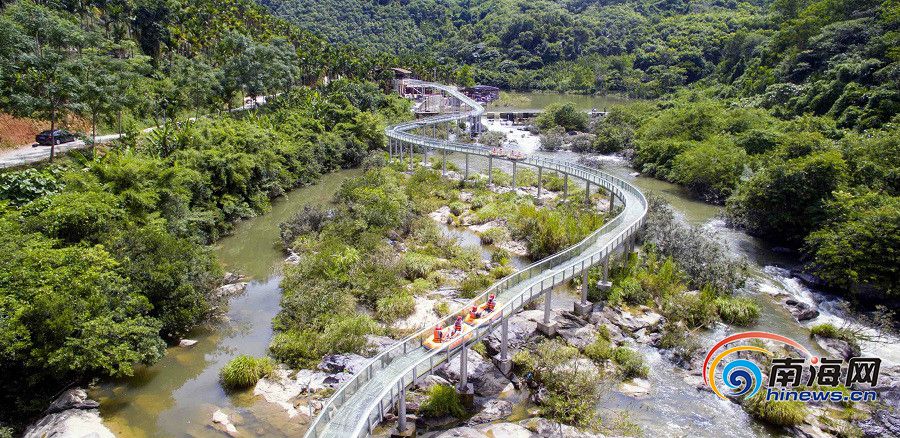 瓊中峽漂流是海南首家空中玻璃漂流,玻璃滑道全長350米,接駁3800米峽谷河道,可供游客暢漂90分鐘,是目前景區極具人氣的游樂項目之一。