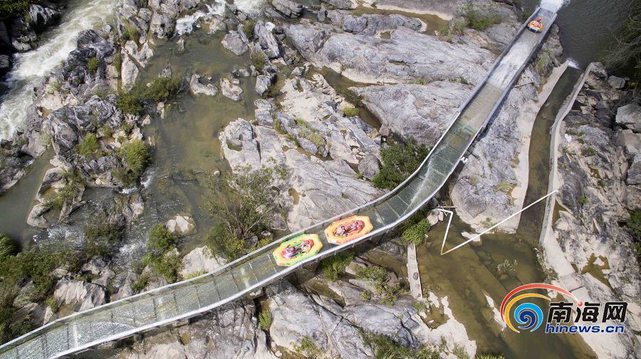 在海南瓊中黎族苗族自治縣的瓊中峽漂流景點,精彩刺激的漂流項目受到游客的追捧,不少游客從海口、三亞趕到這里感受空中玻璃漂流的極致體驗。海報集團全媒體中心記者陳元才 通訊員王清山 林學健 攝