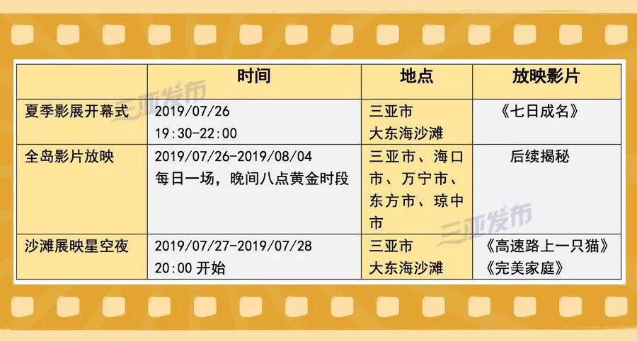 此次影展活動開幕式將于7月26日晚在三亞市大東海沙灘舉辦,開幕影片確定為年初于意大利上映便取得票房佳績的《七日成名》。