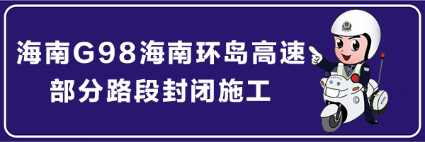 三、2019年7月28日至8月4日,封閉G98環島高速公路大茅隧道右幅(海口往三亞方向)入口段第一行車道,第二應急車道與應急車道正常通行。