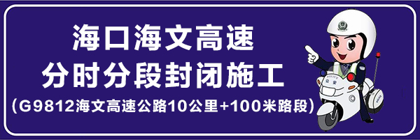 因海口繞城高速公路新建演豐互通工程,需在G9812海文高速公路10公里+100米路段進行拓寬路面及跨線施工,為確保順利施工和行車安全,需對相關路段實施臨時交通管制。