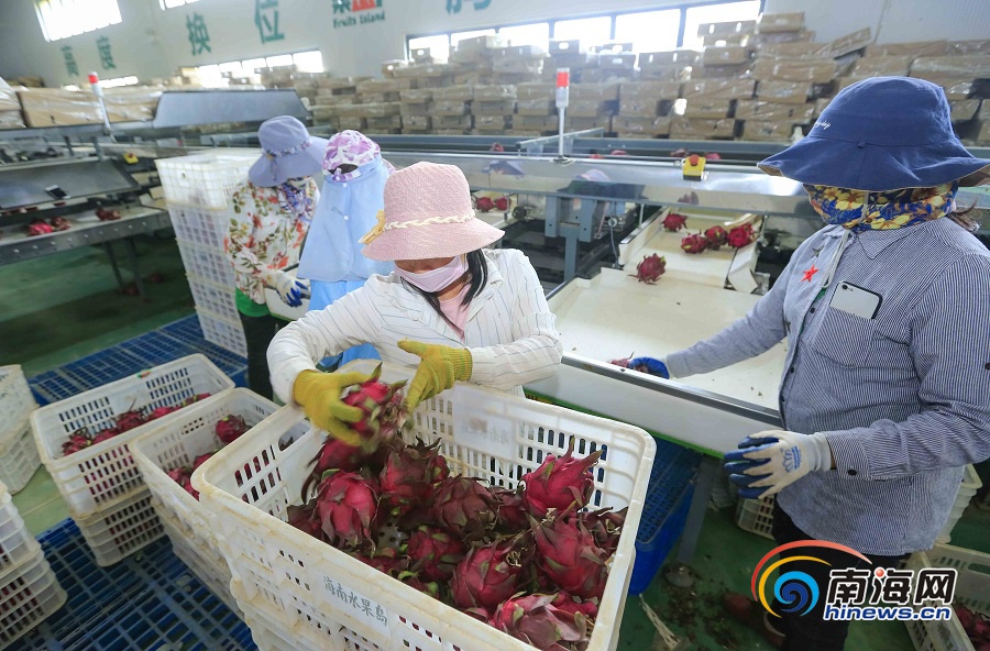 工作人員正在將火龍果打包。海報集團全媒體中心記者 陳元才 見習記者 李天平 攝