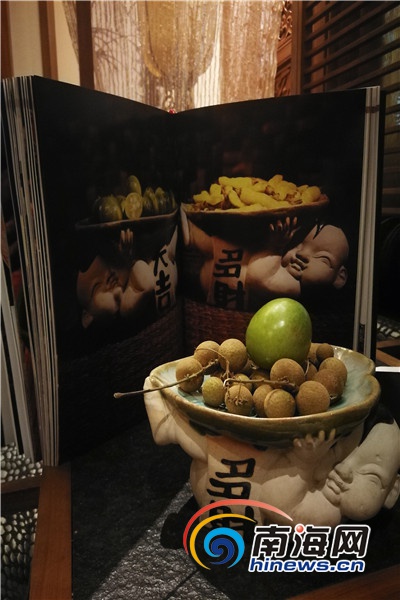 《中國海南菜》配圖用的陶瓷,擺放在酒店私人茶室中。 南海網首席記者 康景林 攝