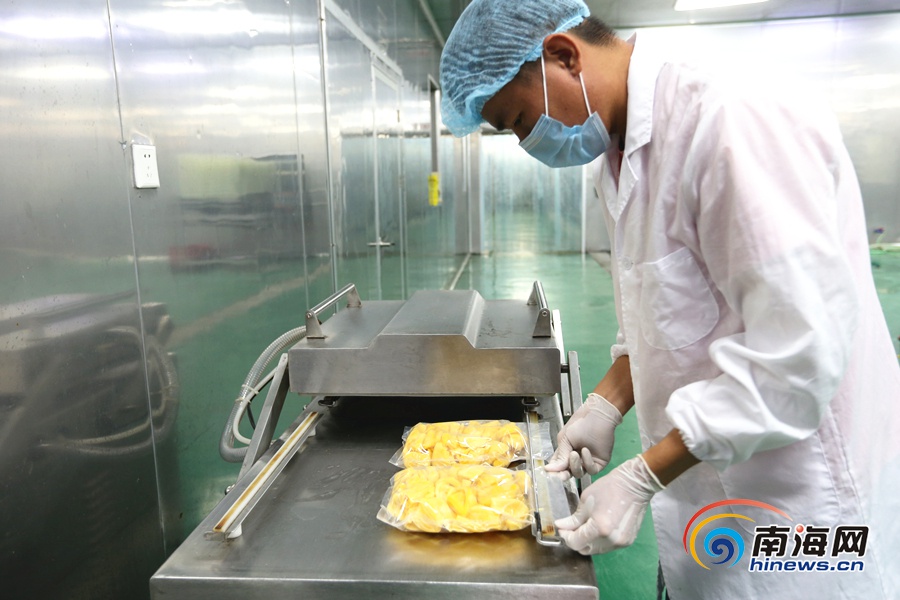 在水果加工方面,南金農(nóng)場公司投資1600萬元建成占地42畝的海南南綠果食品有限公司菠蘿蜜加工廠。現(xiàn)已建成日產(chǎn)20噸的果漿生產(chǎn)線和日產(chǎn)量15噸的菠蘿蜜速凍生產(chǎn)線各1條,可滿足速凍果粒、果丁和果漿、果脯等產(chǎn)品的生產(chǎn)。
