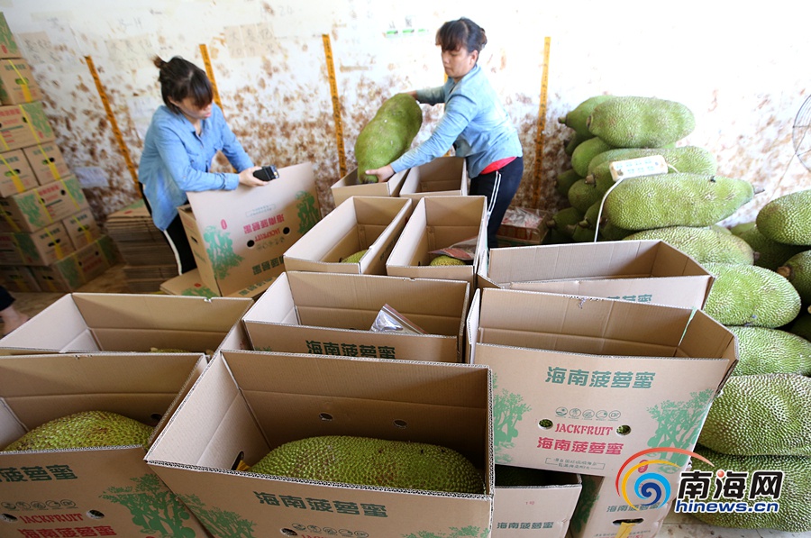 南金農(nóng)場公司的職工對菠蘿蜜進行包裝,準備銷往全國各地。南海網(wǎng)記者陳望 攝