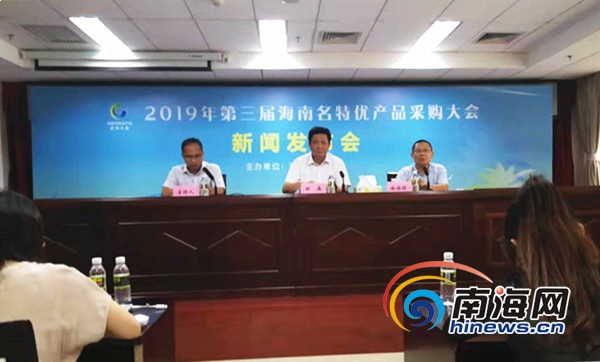 9月16日下午,海南省商務廳在省政府辦公大樓舉辦2019年第三屆海南名特優產品采購大會新聞發布會。南海網記者 任桐攝
