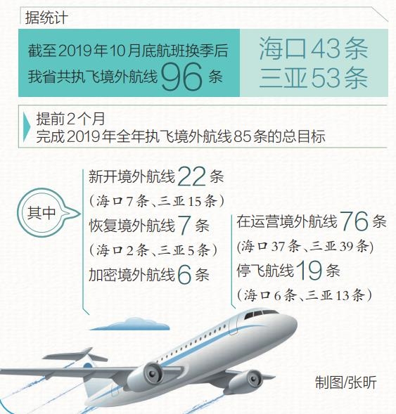 據(jù)統(tǒng)計(jì),截至2019年10月底航班換季后我省共執(zhí)飛境外航線96條,提前2個(gè)月完成2019年全年執(zhí)飛境外航線85條的總目標(biāo)。