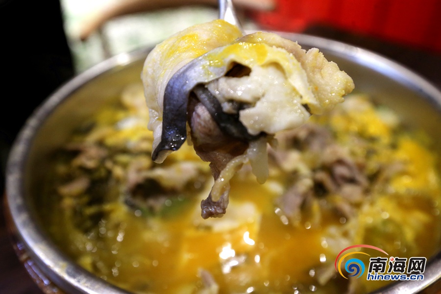 吃過木桶魚的食客最為直觀的感受是魚肉鮮美,魚湯酸辣。南海網記者陳望 攝