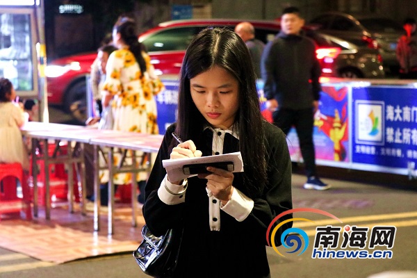 “久居海南,聽說海大南門夜市的小吃不錯,就過來試試。”評審團成員孫先生告訴記者,他老家在陜西,來海南多年,他表示海大南門夜市的衛生環境良好,美食品種多樣,秩序井然,是吃貨們品嘗美食的好去處,“而且這里的小吃很地道,吃完就想著下次啥時再來”。