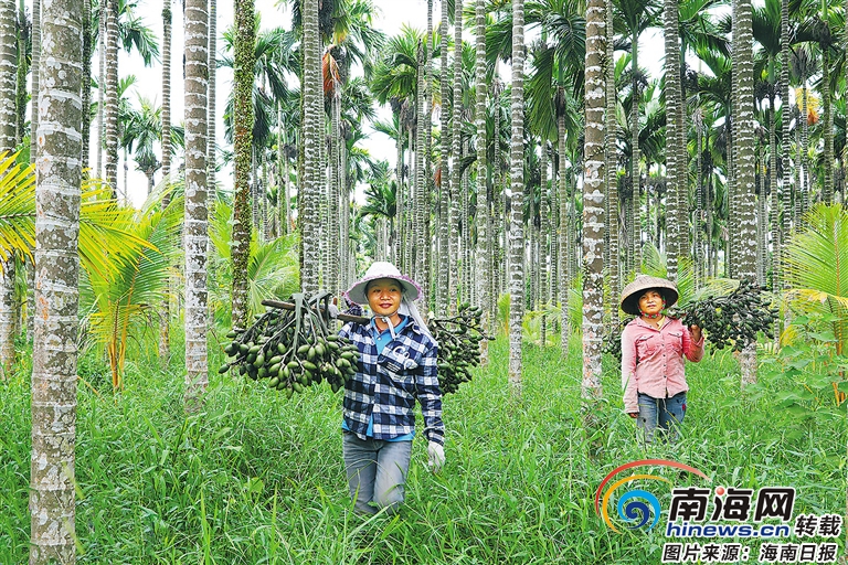 答案是檳榔。海南人種檳榔、吃檳榔的風俗歷史悠久,蘇東坡被貶海南時曾描繪黎家少女口含檳榔頭插茉莉花的情景,寫下“暗麝著人簪茉莉,紅潮登頰醉檳榔”的傳世佳句。