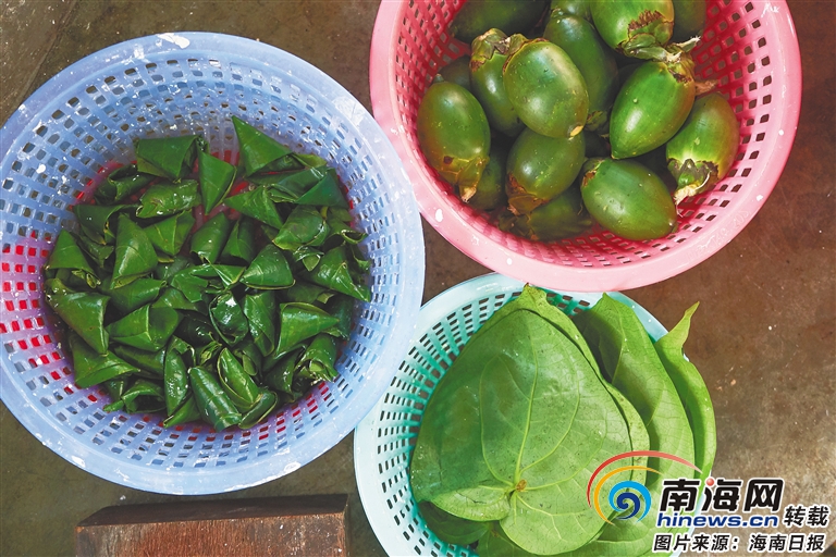 根據當地人介紹和資料記載,蔞葉為“蔓生,味辛香,隨處可種。凡食檳榔必以蔞葉卷蚌灰佐之,乃澤。”蔞葉上刷的白色佐料,是用貝殼、海螺或是魷魚背部硬殼燒制磨成粉調制的膏狀物。萬寧地處海邊,蚌灰隨處可得,搭配蔞葉和佐料的檳榔,入口嚼食口感更佳,因此當地百姓每日口不離檳榔,掌握了蔞葉搭配檳榔的食用方法。