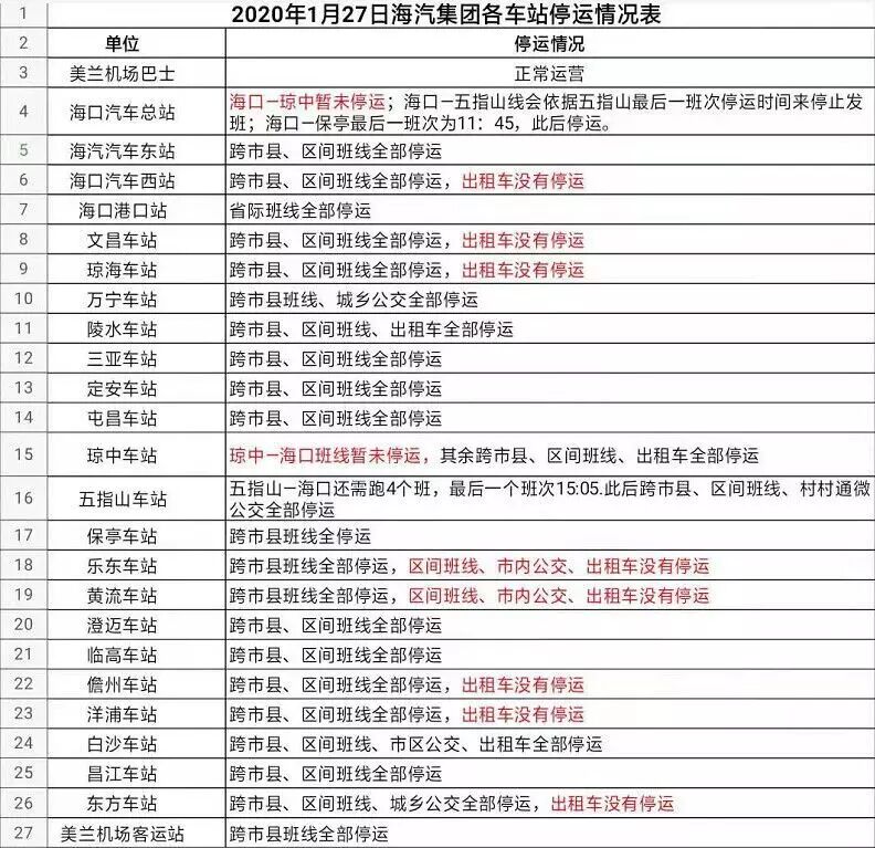 海南旅游頭條、南海網、南海網客戶端海口1月27日消息(南海網記者 胡麗齊)1月27日,南海網記者從海口市交通局運管處獲悉,受海南其他市縣班線車已經停運的影響,目前往返海口的班線車輛無法發班,目前,海口汽車東站、汽車西站以及海口港客運站已經關閉。
