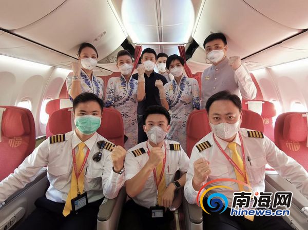 2月15日,海南航空第4架包機護送醫療隊,圖為機組人員合影。海航供圖