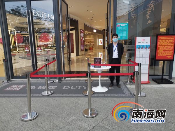 海口日月廣場免稅店將全面推行和實施“海南省健康一碼通系統(tǒng)”,每個出入口都安排了專人掃描進(jìn)店人員的個人健康碼,測量、登記進(jìn)店人員的體溫和檢查口罩佩戴情況,符合疫情防控要求方可進(jìn)店。免稅店供圖