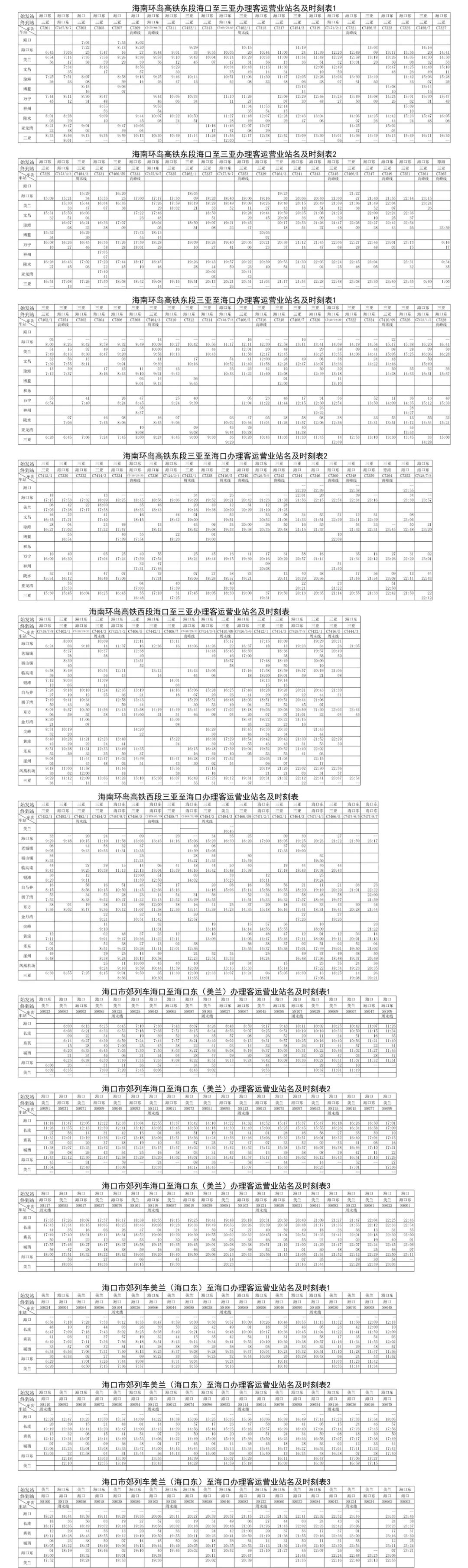 據了解,海南環島高鐵新列車運行圖開行“C”字頭動車組列車45.5對,其中東段本線車29對,三亞至三亞環島列車9.5對,??跂|至海口東環島列車7對,較舊圖增加2對東段本線車。新圖分為日常圖和周末圖。日常圖開行動車組列車33.5對,其中海南環島高鐵東段本線21對,三亞至三亞環島列車6.5對,海口東至海口東環島列車6對,周末圖開行動車組列車36.5對,其中海南環島高鐵東段本線21對,三亞至三亞環島列車9.5對,海口東至海口東環島列車6對。