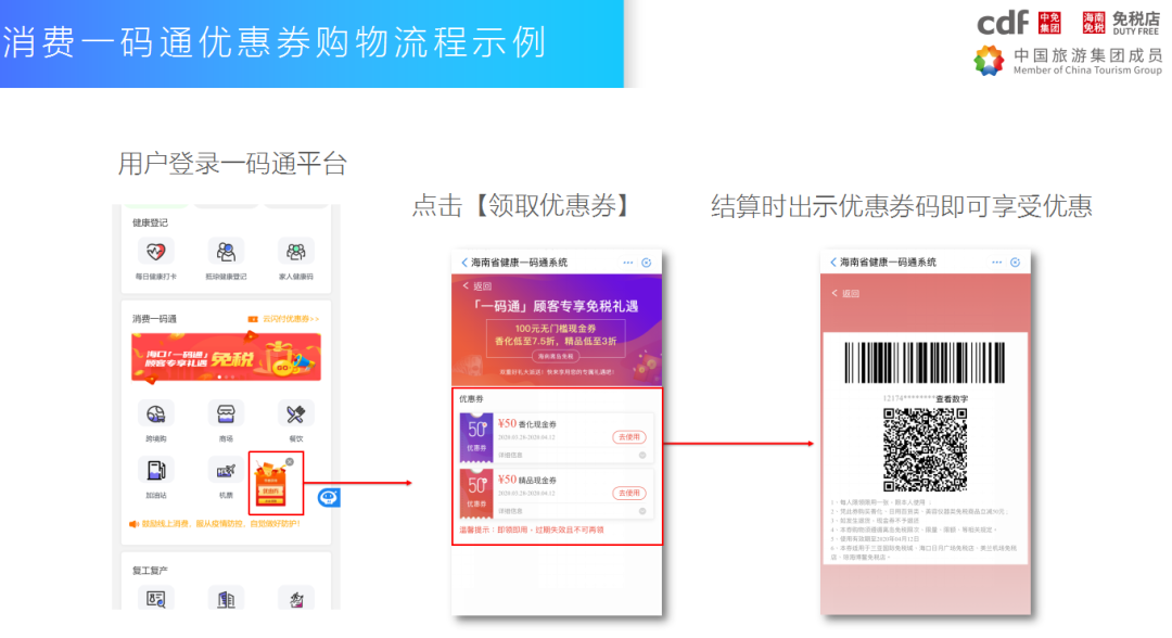當(dāng)天,中免集團(tuán)、中國(guó)石化、中國(guó)銀聯(lián)、海南航空以及省內(nèi)餐飲、商場(chǎng)、便利店等各類(lèi)商家將通過(guò)“消費(fèi)一碼通”發(fā)放約3000萬(wàn)元優(yōu)惠券,省內(nèi)外居民在登錄后每人可領(lǐng)取210元消費(fèi)券大禮包,其中包括100元免稅現(xiàn)金券、20元跨境購(gòu)消費(fèi)券、70元中石化消費(fèi)券以及20元航空消費(fèi)券。消費(fèi)券不僅可以在線上購(gòu)物,還可在實(shí)體店付款時(shí)抵扣,滿足廣大消費(fèi)者的購(gòu)物消費(fèi)需求。