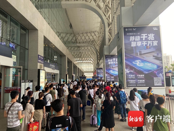 新海南客戶端、南海網、南國都市報6月25日消息(記者 王小暢 通訊員 廖琴琴)6月25日上午10時左右,環島高鐵東段??跂|站驗證口等待檢票乘車的旅客排著長隊,端午節小長假客流迎來高峰。截至6月25日18時,??跂|車站發送旅客2.9萬人次。