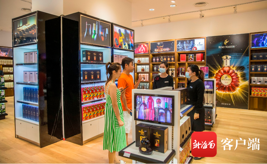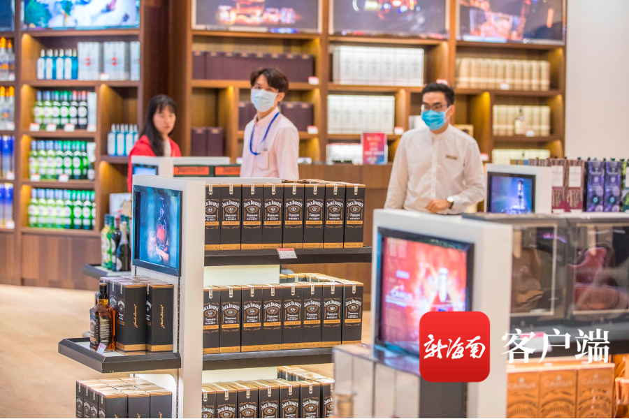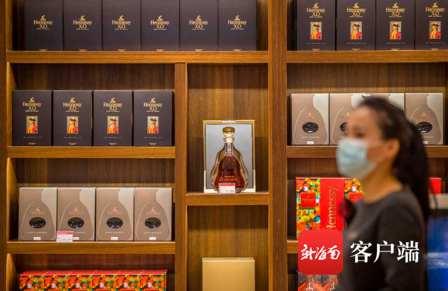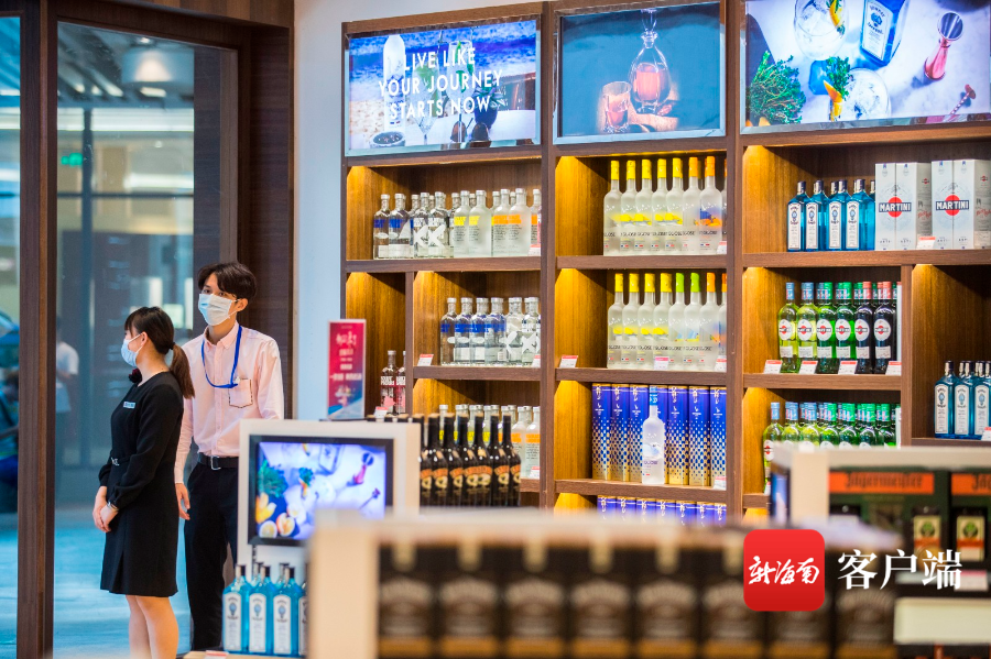 海口日月廣場免稅店,售賣的免稅酒水琳瑯滿目。記者 劉洋攝