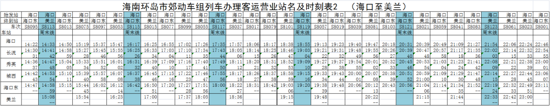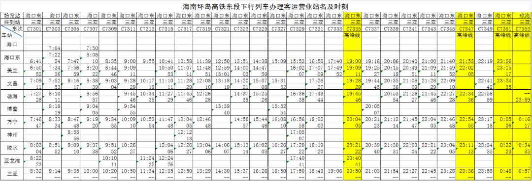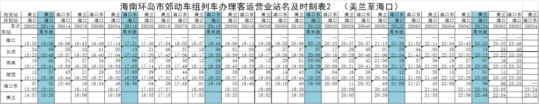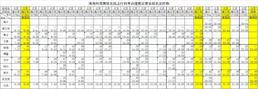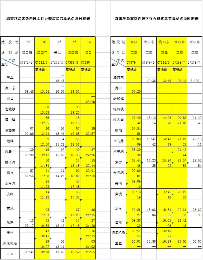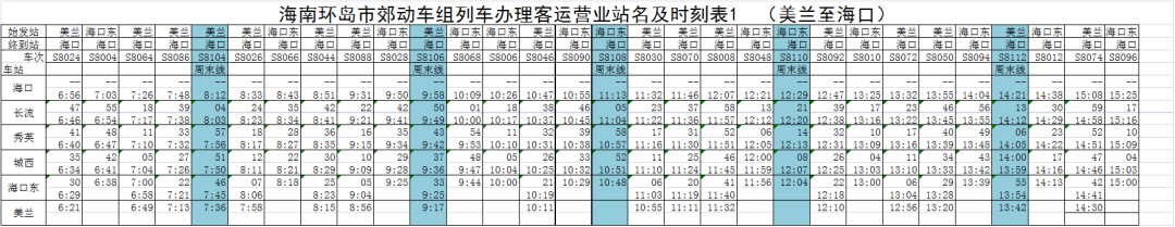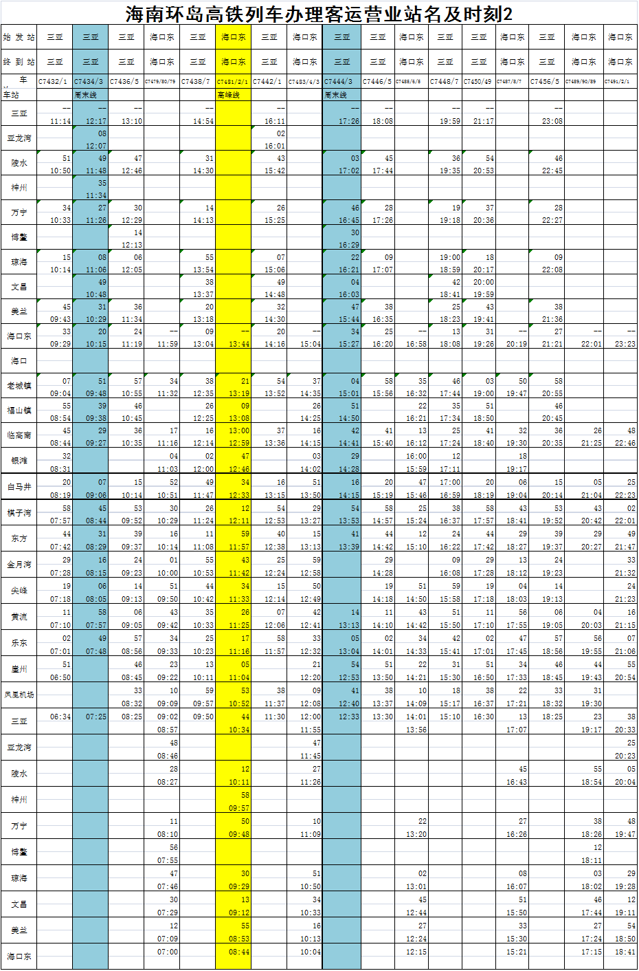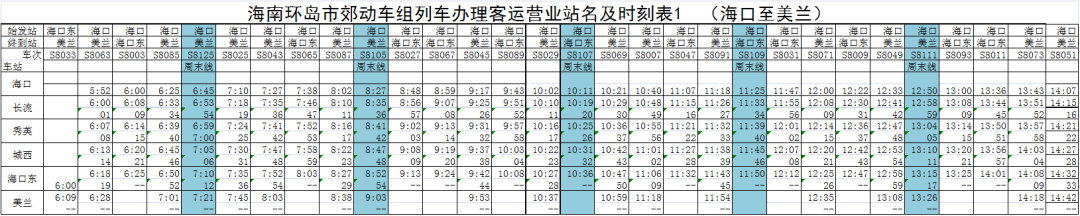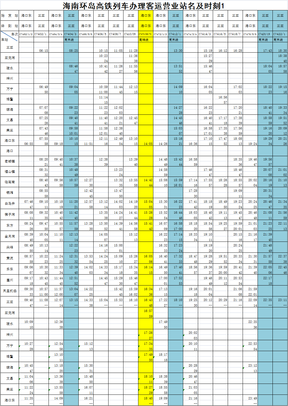 海南環(huán)島高鐵、海口市域列車(chē)時(shí)刻表