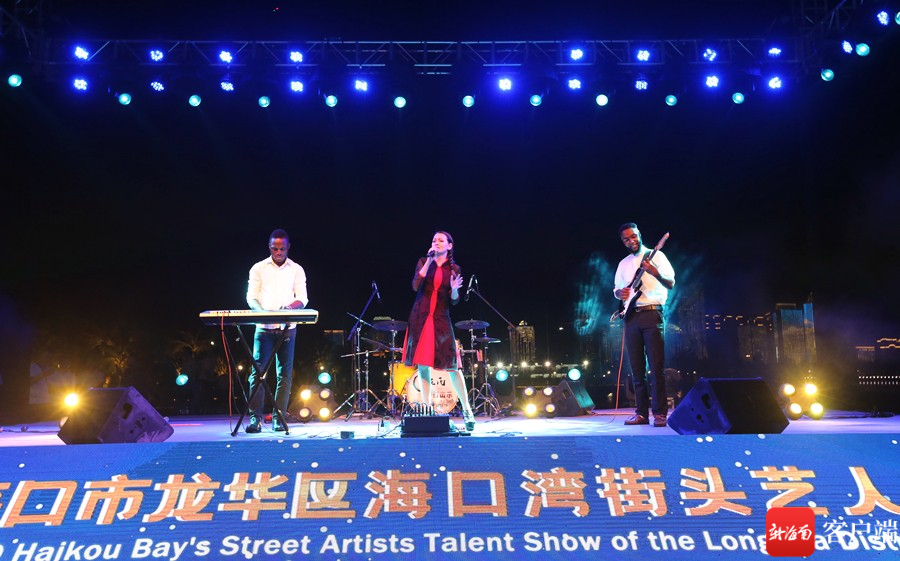 ??邶埲A區優秀街頭藝人海口灣奏響自貿港“夜曲”。記者 陳望 攝