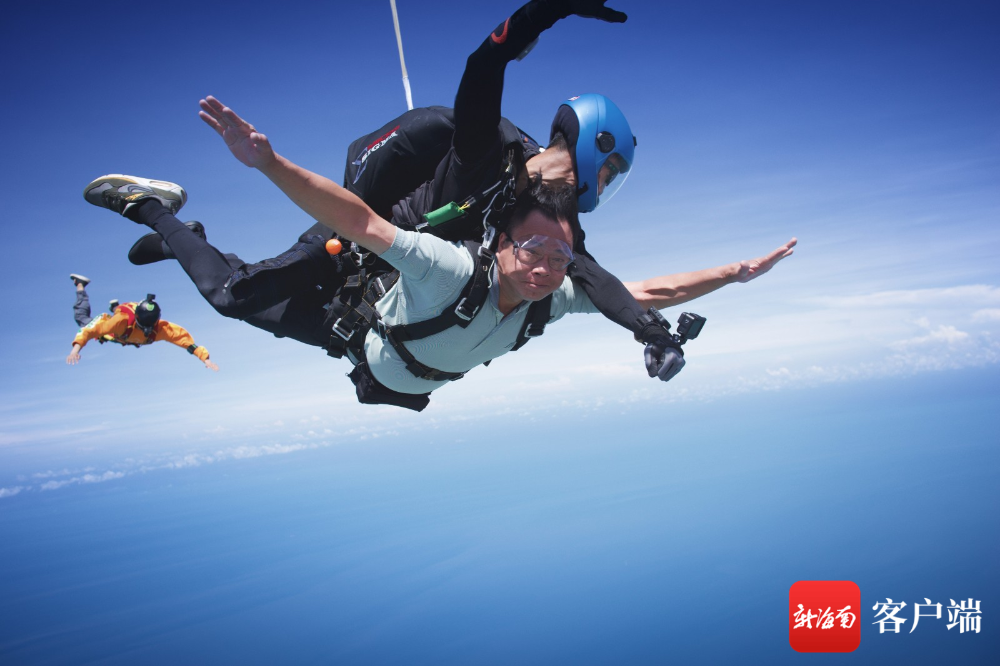 東方市長(zhǎng)張長(zhǎng)豐體驗(yàn)4000米高空跳傘。跳傘基地供圖