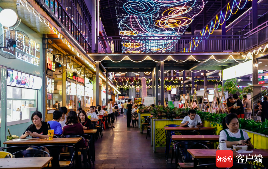 新海南客戶端、南海網、南國都市報10月4日消息(記者 杜倬荷)入夜時分,來到位于海口市秀英區的尋嘗里,仿佛穿越到一個色彩斑斕的都市桃源。以夢幻的燈光為伴,穿過高大中空的通道,陣陣“穿堂風”襲來,給食肆檔口的客人帶來絲絲愜意與安然。人們在這里推杯換盞、品嘗美食,細品著海口這座濱海城市獨特的文化魅力。在8天“超級黃金周”里,卸下一身繁忙與疲累,讓尋嘗里帶你赴一場“夜市江湖”。