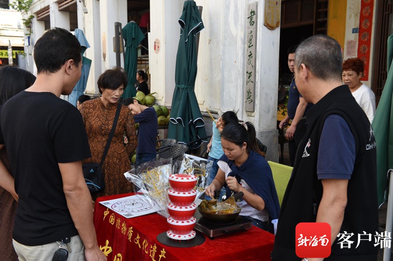 “這是我第一次吃到南洋風味的小吃,特別是這個斑斕糕,他們用新鮮芭蕉葉包著點心的創意也很有趣。我們是第二次來海南了,但是第一次到騎樓玩,沒想到碰上這么有意思的活動,不光嘗到了特色美食,還了解了騎樓背后的歷史文化,還能看到獨特的南洋歌舞表演,這次來騎樓還真是來對了!”來自寧夏的游客陳女士贊不絕口。