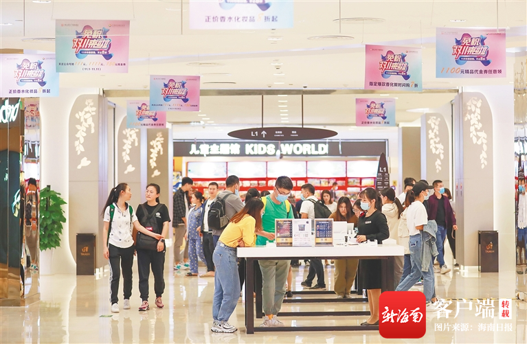 ??谌赵聫V場免稅店部分爆款香化商品6-6.5折,正價香水、化妝品全場8折,1100元精品代金券任意領,大牌精品低至5折,部分進口酒7折,還可關注“海南免稅??诘辍蔽⑿殴娞栂蘖繐?11元、1111元、150元現金券;活動期間,購買手表、首飾、太陽鏡、時尚品、進口酒即可享受3倍積分福利,積分當錢花,1積分=1元。線上還將推出“會員購11.11”活動,11月10日0點準時開售。