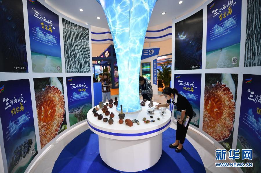 觀眾在海南省三沙市展區參觀。
