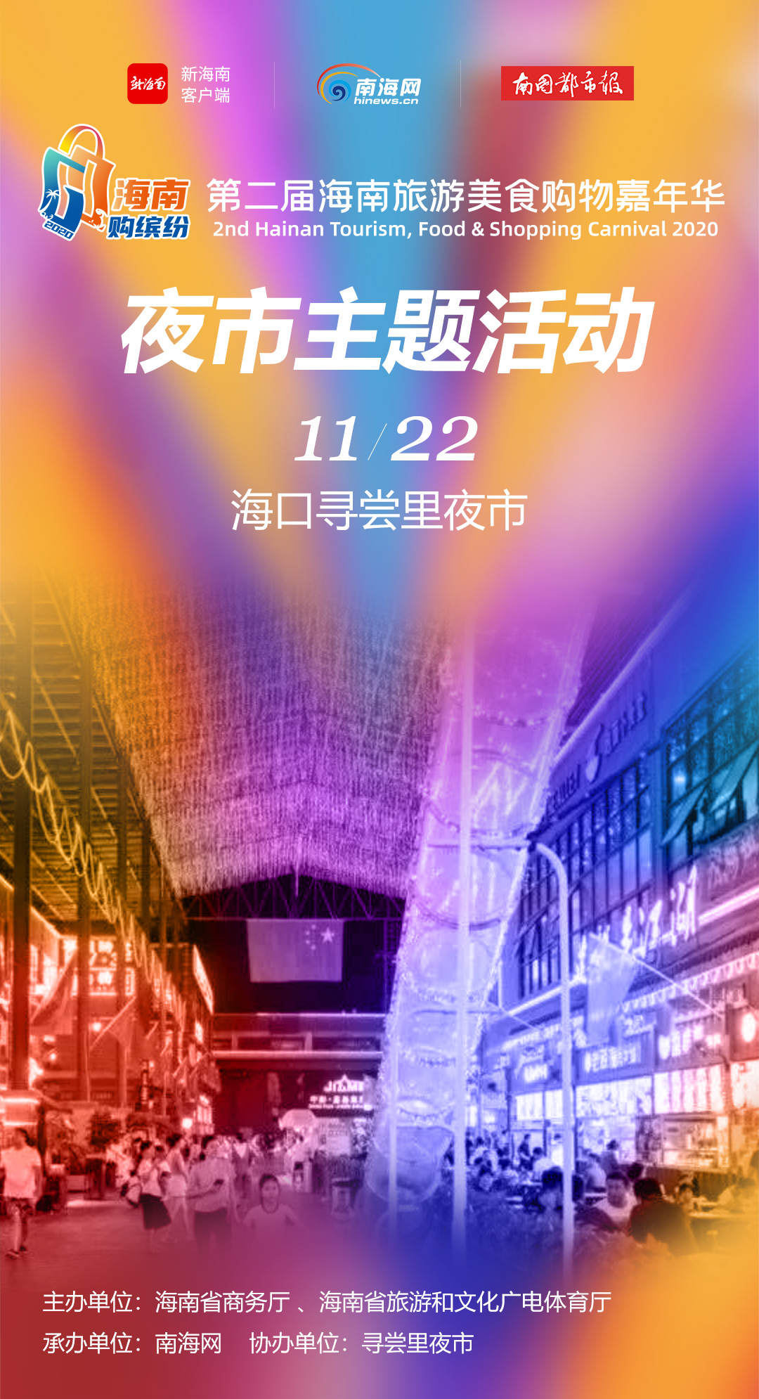 新海南客戶端、南海網(wǎng)、南國都市報(bào)11月20日消息(記者 韓星)這個(gè)周末干點(diǎn)啥?走,逛夜市去!2020第二屆海南旅游美食購物嘉年華夜市主題活動(dòng)將于11月22日晚7時(shí)30分在海口尋嘗里夜市火熱開啟,現(xiàn)場(chǎng)不僅可以欣賞精彩表演,還能品嘗到商家推介的特色美食,更能參與666元霸王餐錦鯉抽獎(jiǎng),讓你免費(fèi)吃到爽!