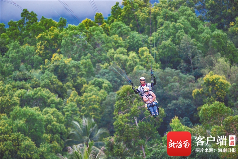 游客在教練的帶領下體驗滑翔傘。海南日報記者 封爍 攝